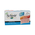 Ces boites pour chat Schesir sont de délicieuses pâtées de 50g en gelée avec morceaux. Avec des recettes variées dont beaucoup au poisson (riche en Oméga 3), ces boites contiennent des ingrédients 100% naturels qui sont préparés à la main et cuits à la vapeur afin de préserver leurs saveurs, leurs vitamines et leurs apports nutritionnels.